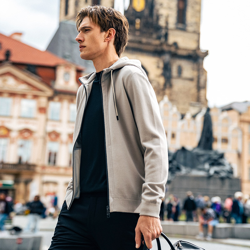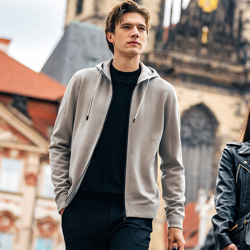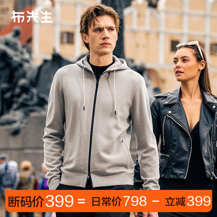 MrBu布先生连帽针织外套夹克男秋冬双色保暖羊毛开衫PT15578断码