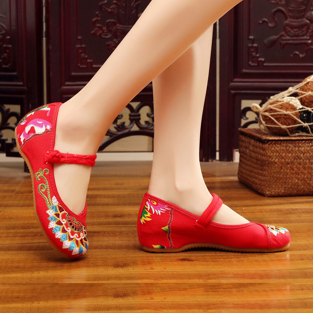 广场舞鞋女绣花鞋软底舞蹈鞋老北京布鞋红色秧歌腰鼓扇子舞跳舞鞋