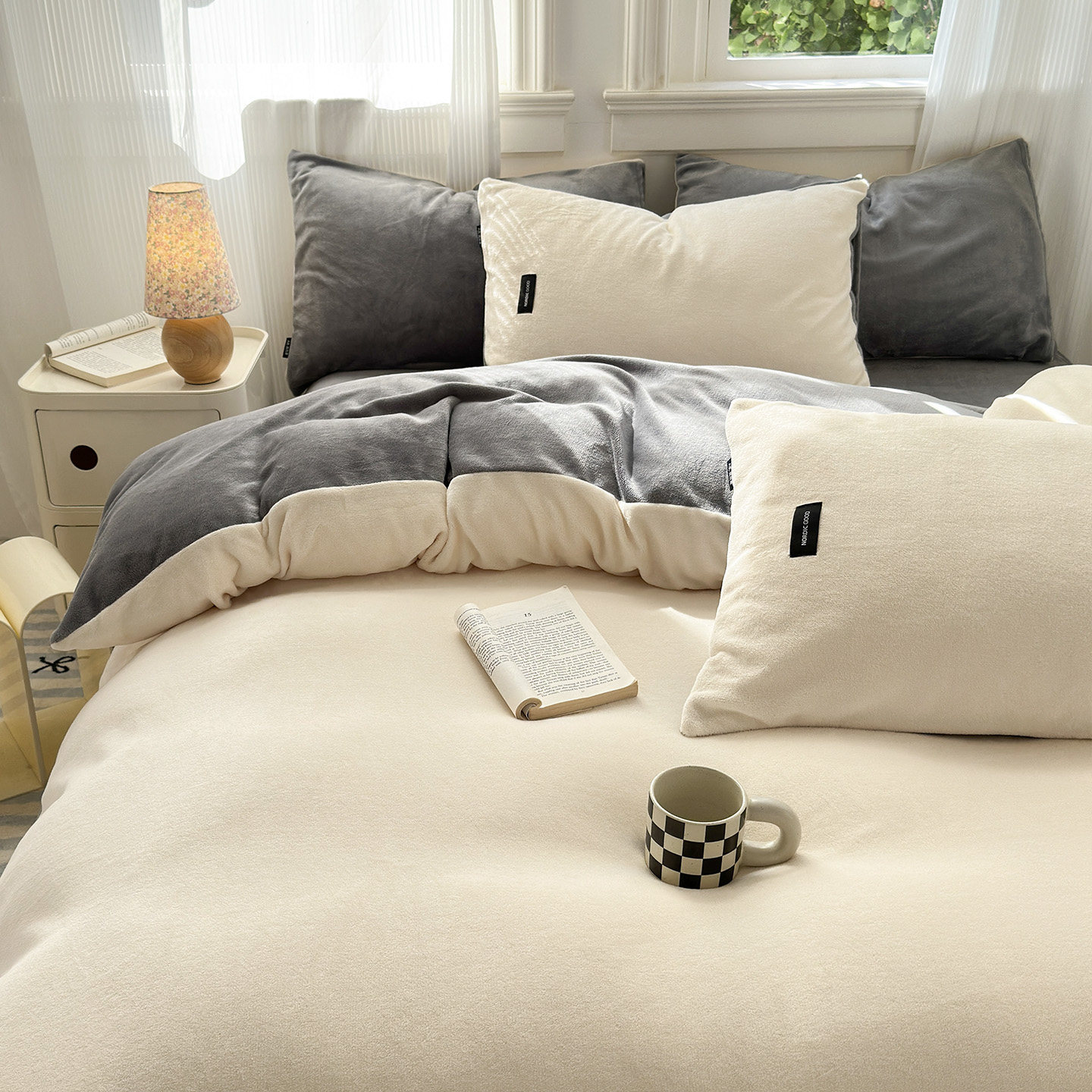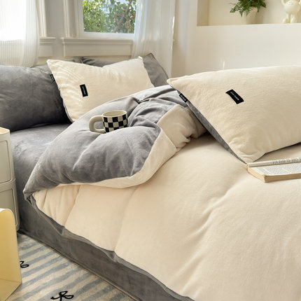 无印良品天鹅绒四件套法兰绒冬牛奶绒加厚珊瑚绒被套床单床上用品
