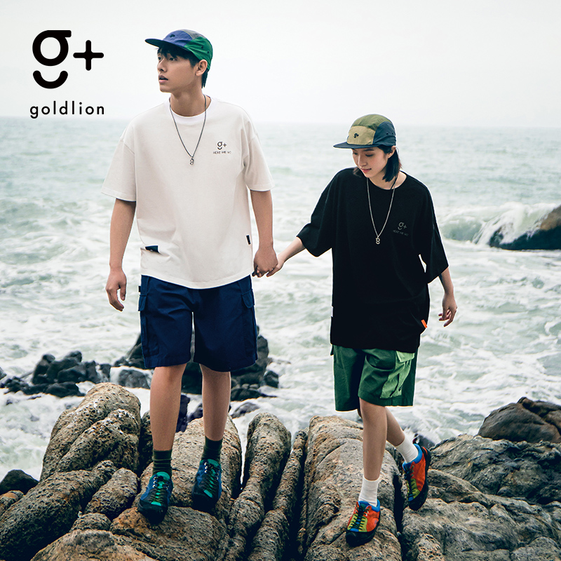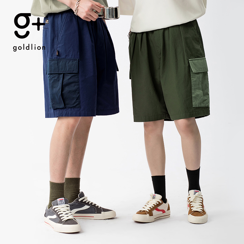金利来 g+潮牌棉质透气拼色工装风贴袋短裤宽松休闲五分裤