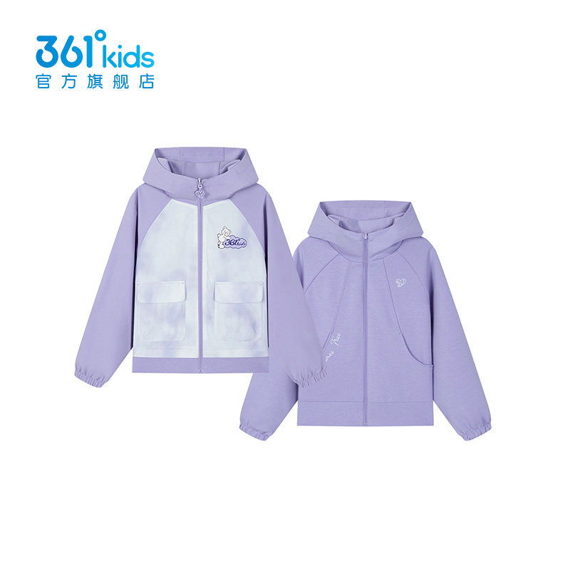 361度儿童连帽外套女童2025休闲拉链衫双面穿工装夹克K62613601