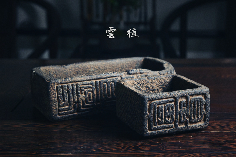 国风仿古汉砖禅意紫砂粗陶微景观花盆菖蒲文竹中式复古做旧花器