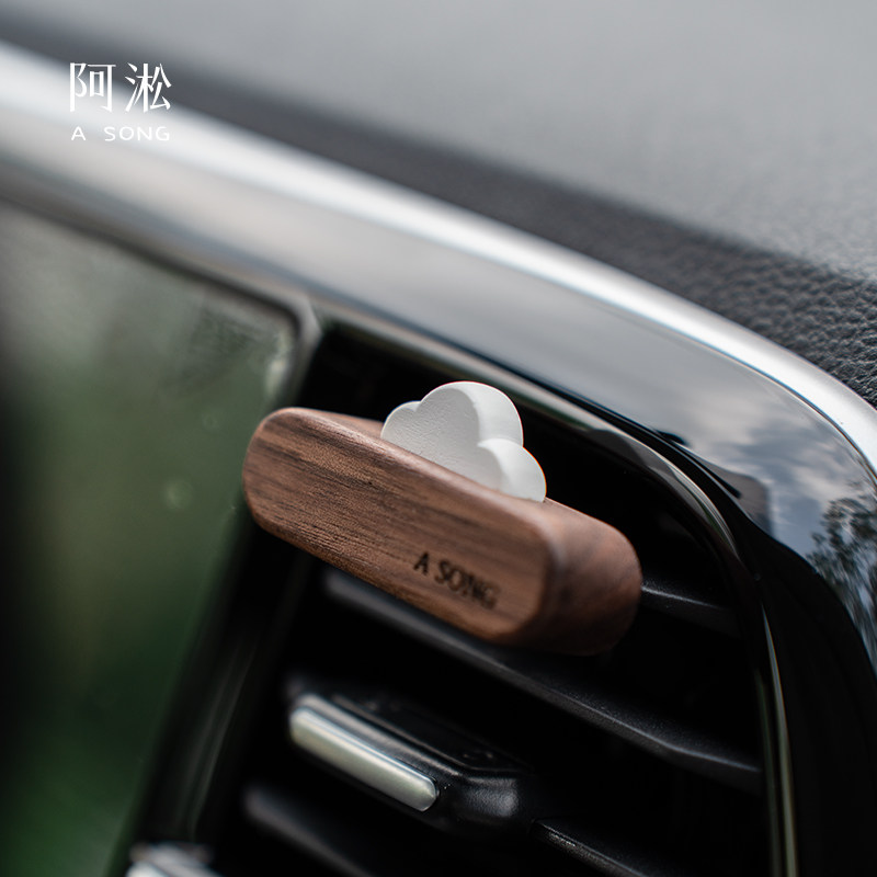 《一朵浮云》阿淞原创实木质车载出风口香薰扩香器汽车香水高级感