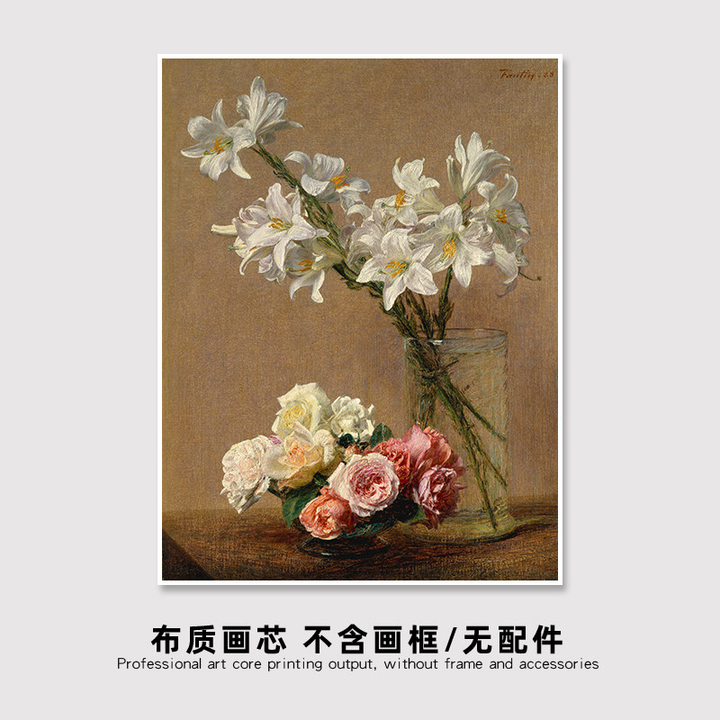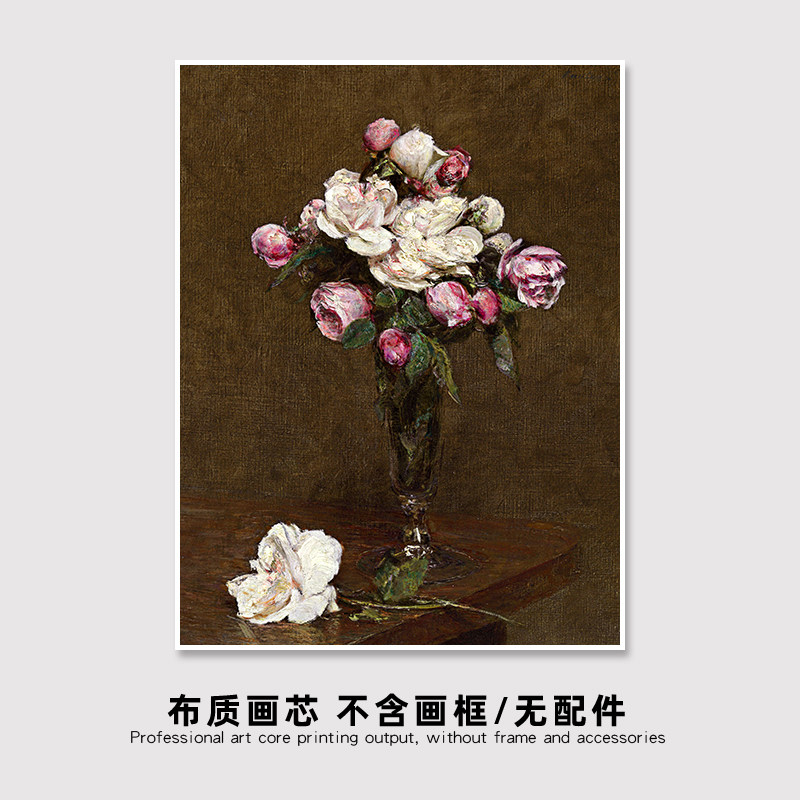 方丹图尔静物花卉欧式复古油画轻奢客厅床头摆画装饰画芯打印定制