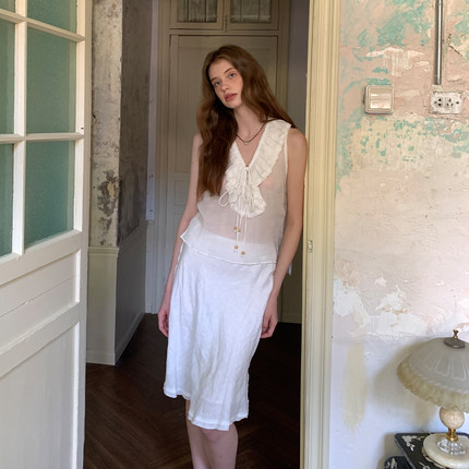 ZHUYIYI 苎麻高级感亚麻无袖衬衫+白色半裙套装女夏