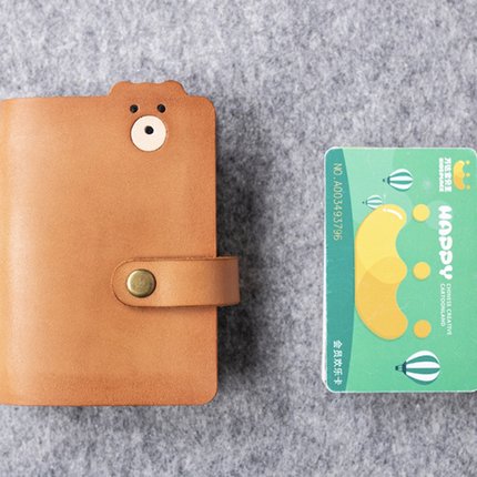 新款小熊头层PU女式多卡位大容量情侣卡包证件银行卡名片收纳包