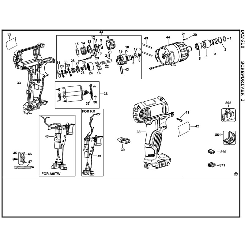 订购得伟DEWALT锂电10.8V充电式螺丝起子零配件维修服务DCF610