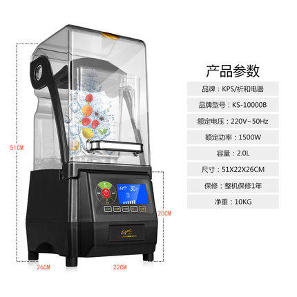 祈和KS-10000B 商用沙冰机奶茶店碎冰搅拌果汁料理机冰沙机隔音罩