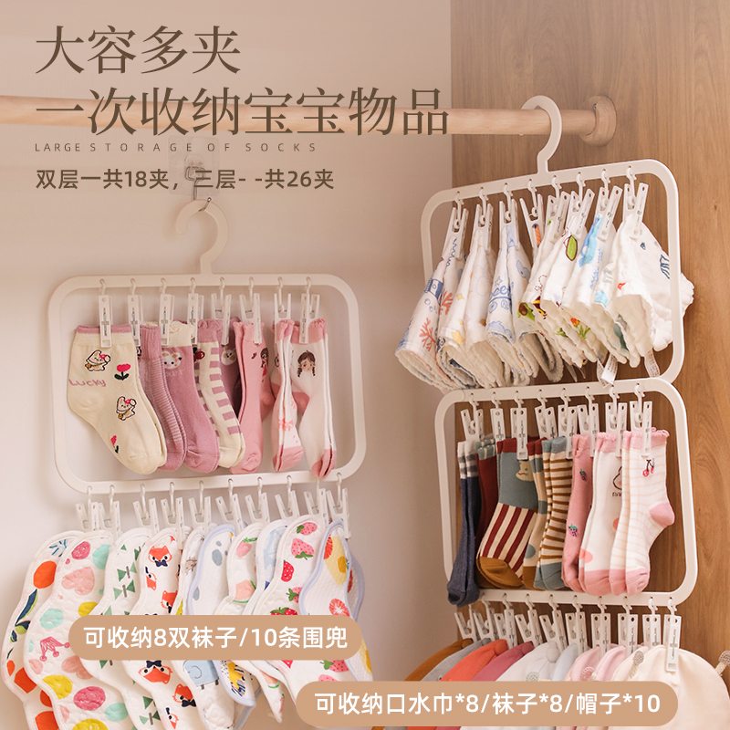 多夹子婴儿衣架宝宝专用儿童袜子晾晒架多功能收纳挂衣架阳台防滑