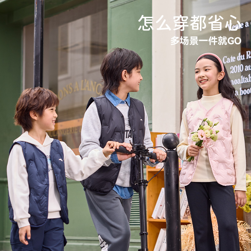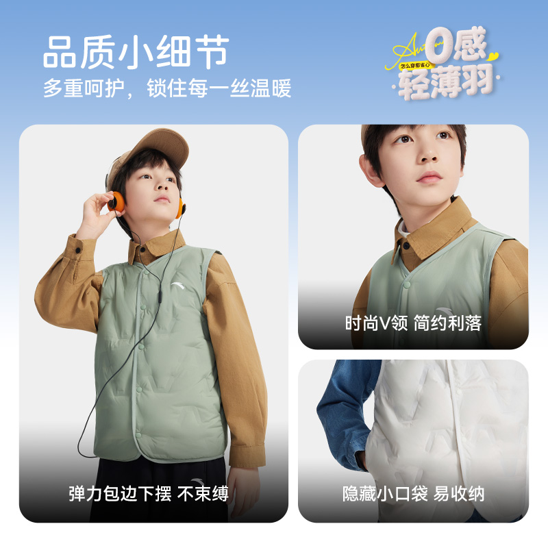 安踏儿童轻薄羽绒马甲年秋春季新款男女大童户外保暖轻薄款马甲