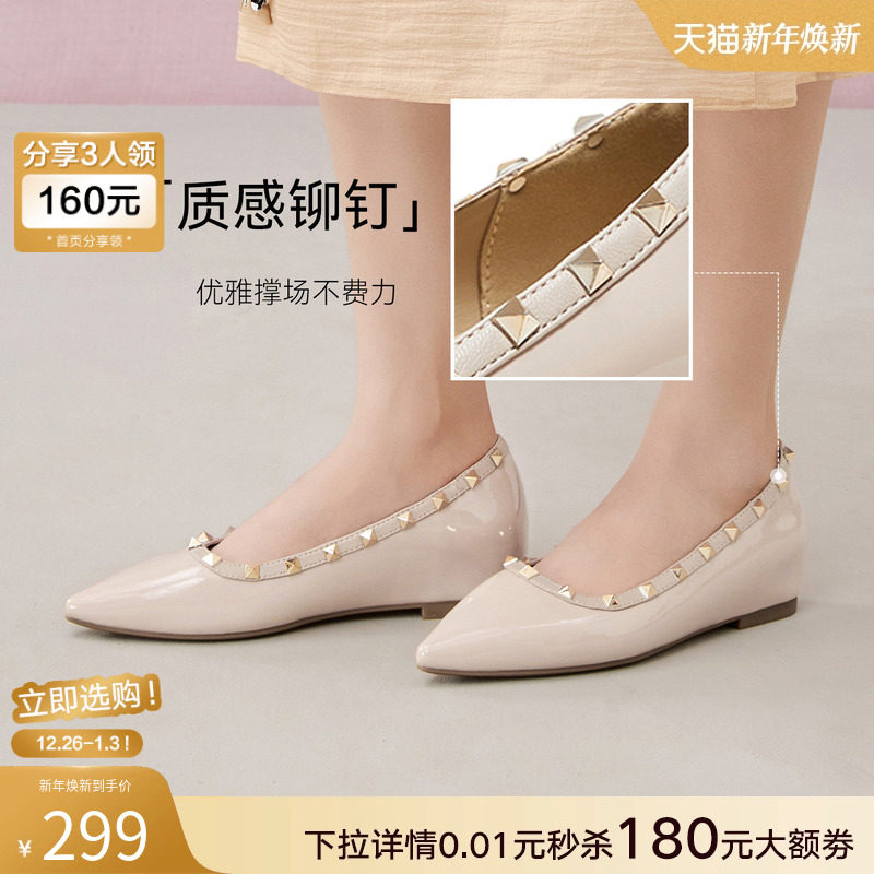 百思图2025秋季新款气质低跟一脚蹬浅口单鞋尖头通勤女鞋B1202CQ5