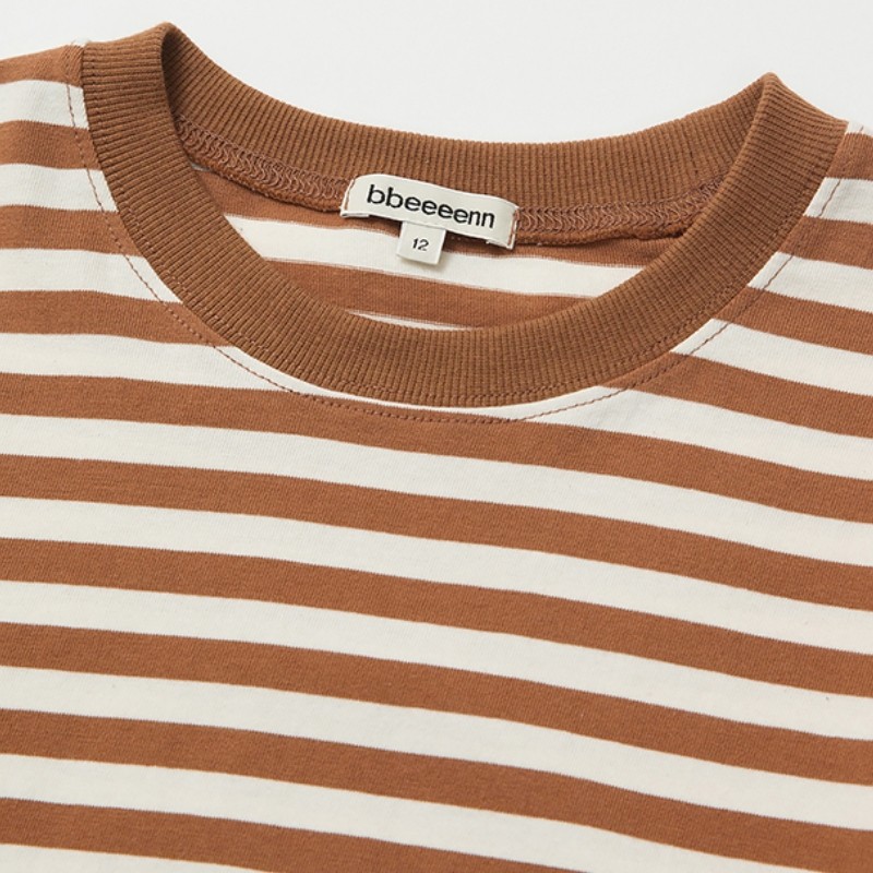 bbeeeenn冬季长袖条纹温暖T恤男女儿童纯棉学院风打底衫透气上衣
