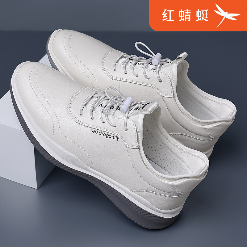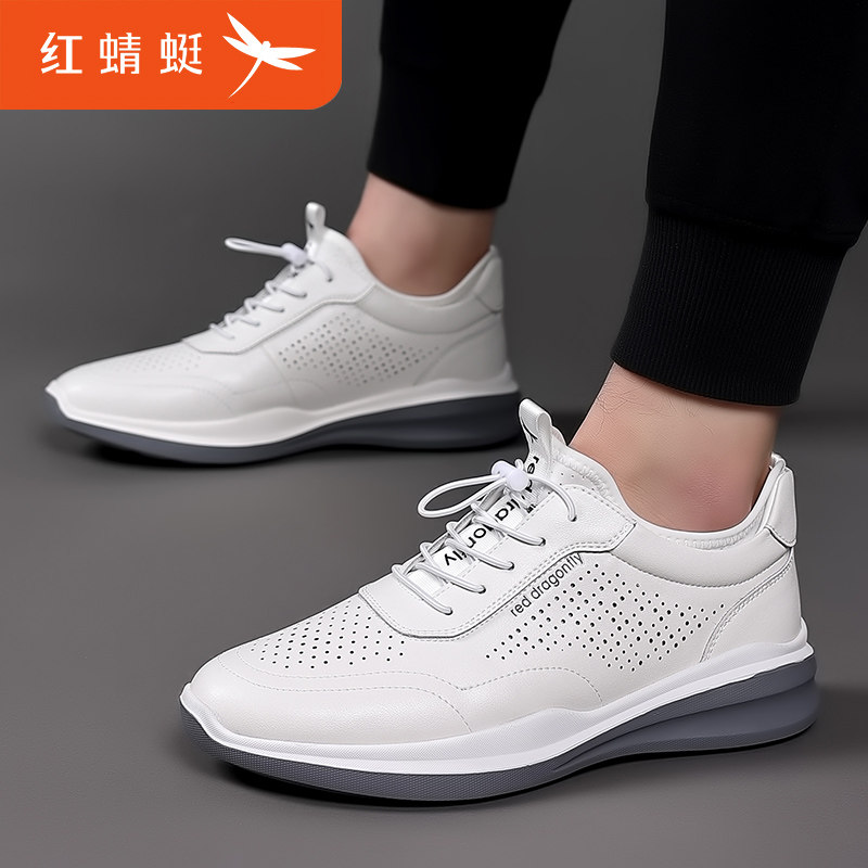 红蜻蜓男鞋春季一脚蹬镂空皮鞋男士休闲鞋新款透气洞洞真皮小白鞋