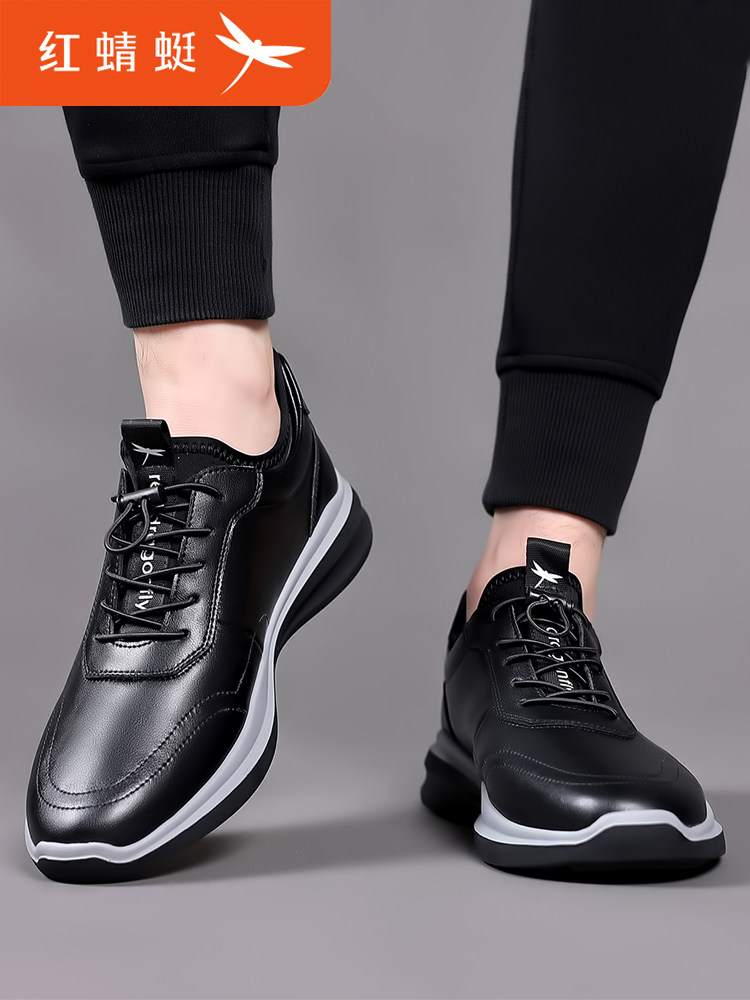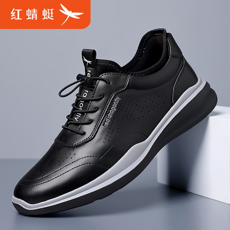 红蜻蜓男鞋真皮透气镂空休闲皮鞋
