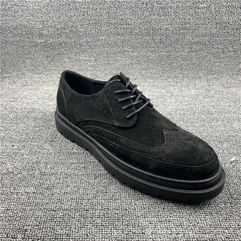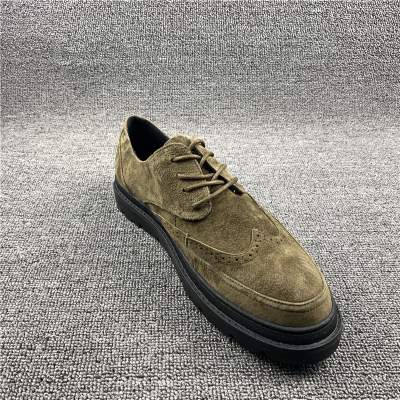 断码处理2023秋季新款真皮男鞋休闲布洛克圆头潮流英伦风透气皮鞋