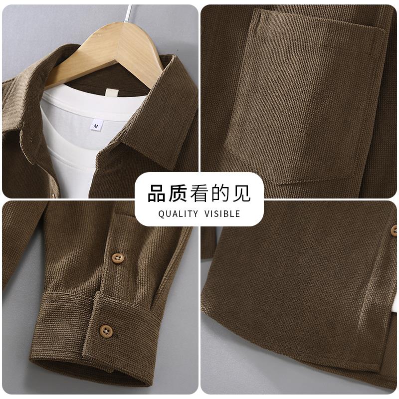 恒源祥华夫格男士长袖衬衫春秋季中老年爸爸休闲宽松工装衬衣外套