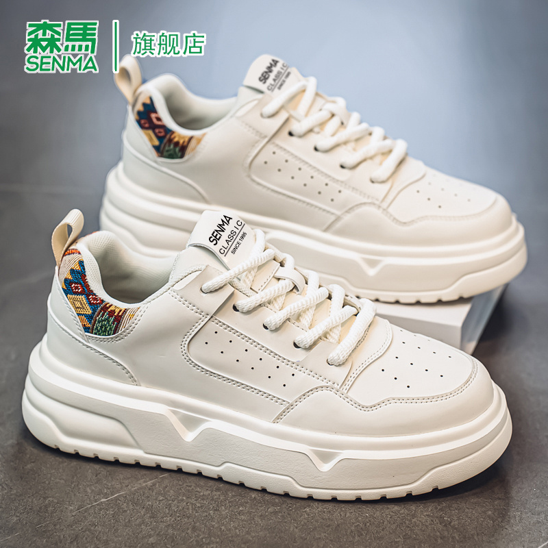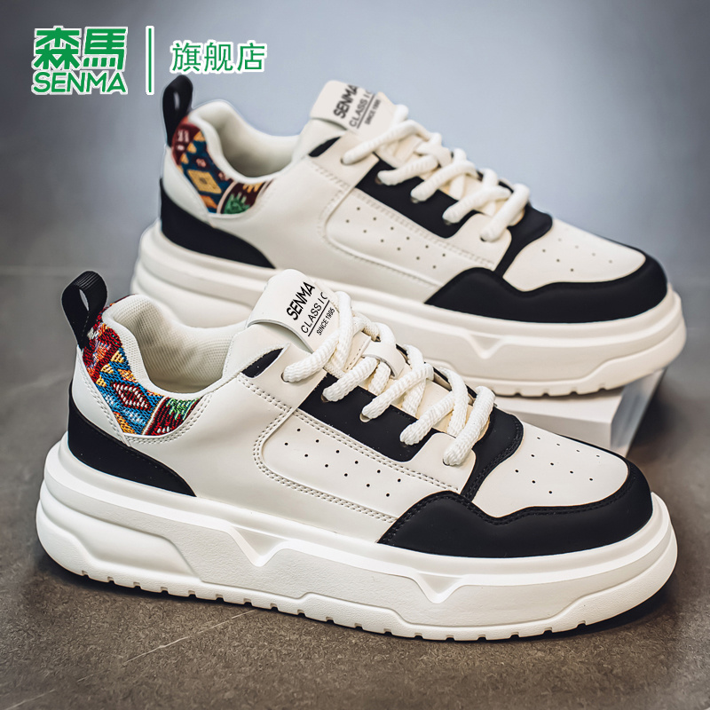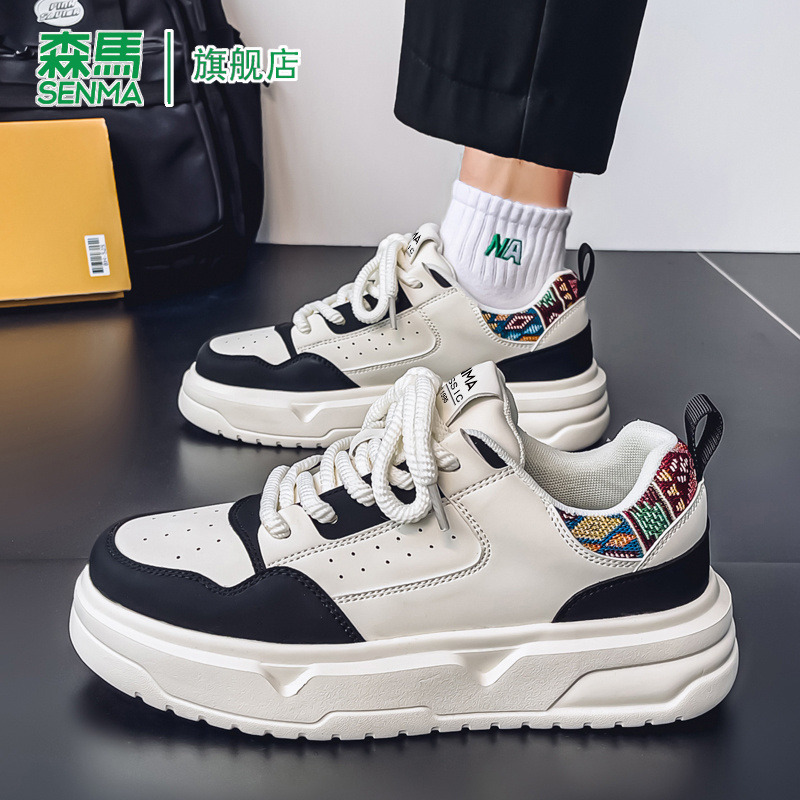 森马男鞋2025秋季新款运动防滑休闲鞋厚底真皮青少年潮流百搭板鞋