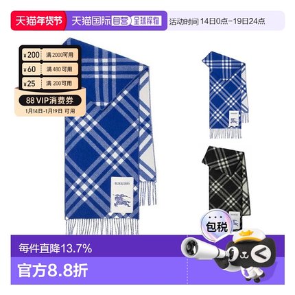 自营1h可退 欧洲直邮BURBERRY博柏利战马徽标羊毛格纹围巾