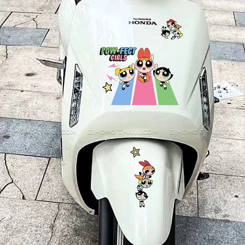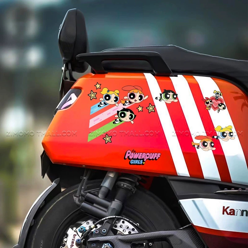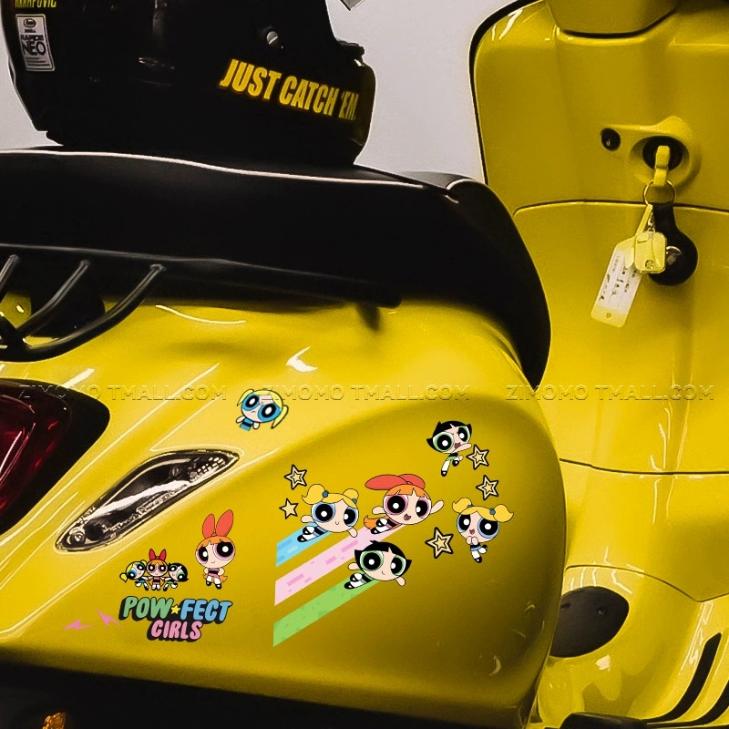 飞天小女警划痕遮挡汽车贴纸可爱头盔贴电动摩托车装饰卡通个性贴