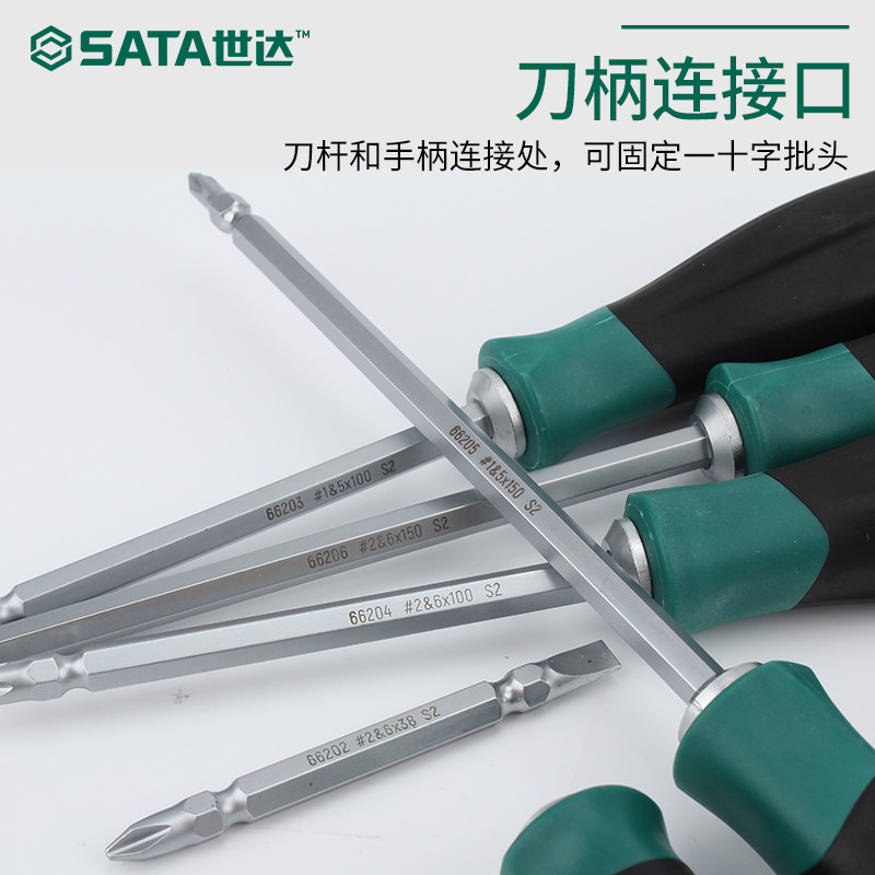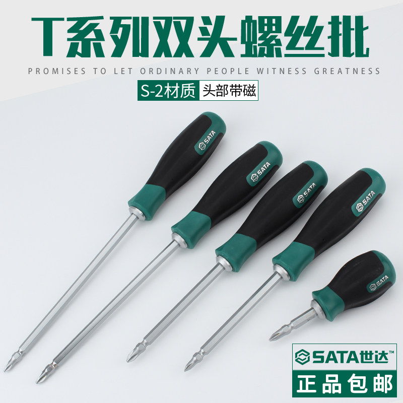 SATA世达两用螺丝刀一字十字双头短改锥高强度S2钢超硬梅花小起子