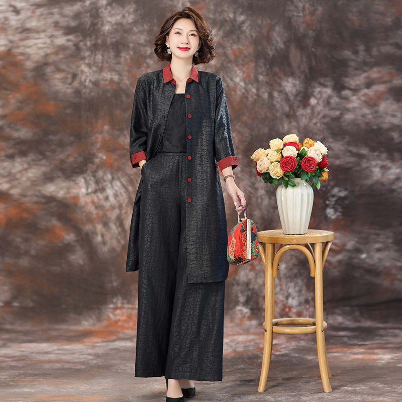 香云纱连衣裙女新中式妈妈装2025春款真丝开衫复古桑蚕丝风衣外套
