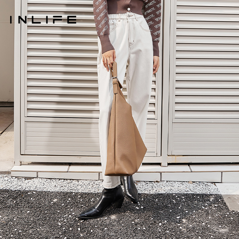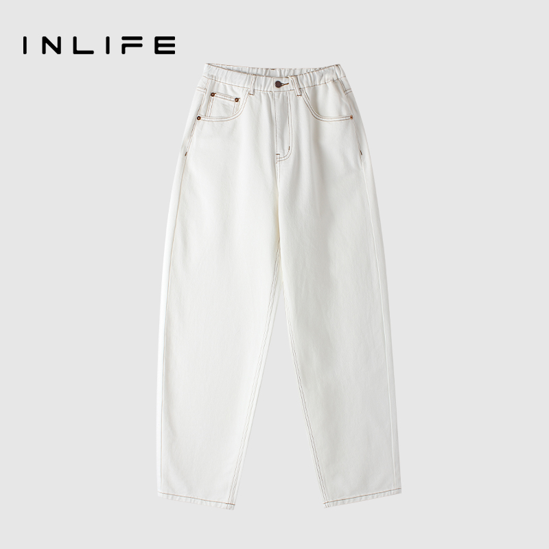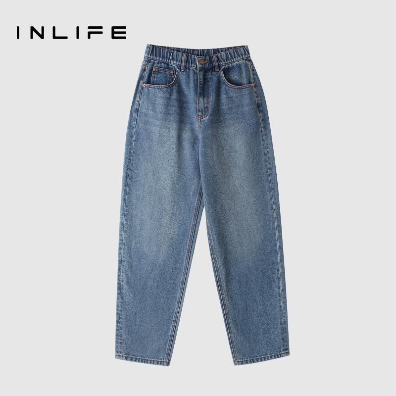 inlife高腰锥形牛仔裤女2025年春新款哈伦裤宽松显瘦长裤老爹裤子