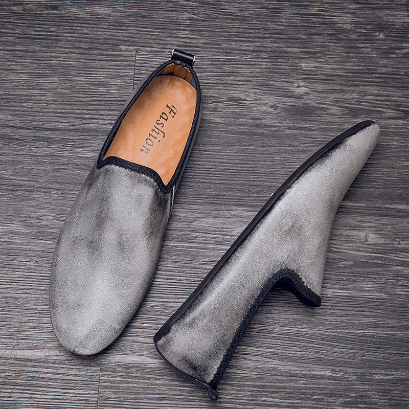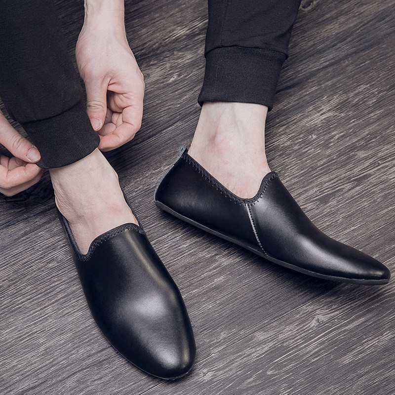 尖头休闲男皮鞋2025新款轻便软低真皮小码时尚潮流一脚蹬豆豆鞋男