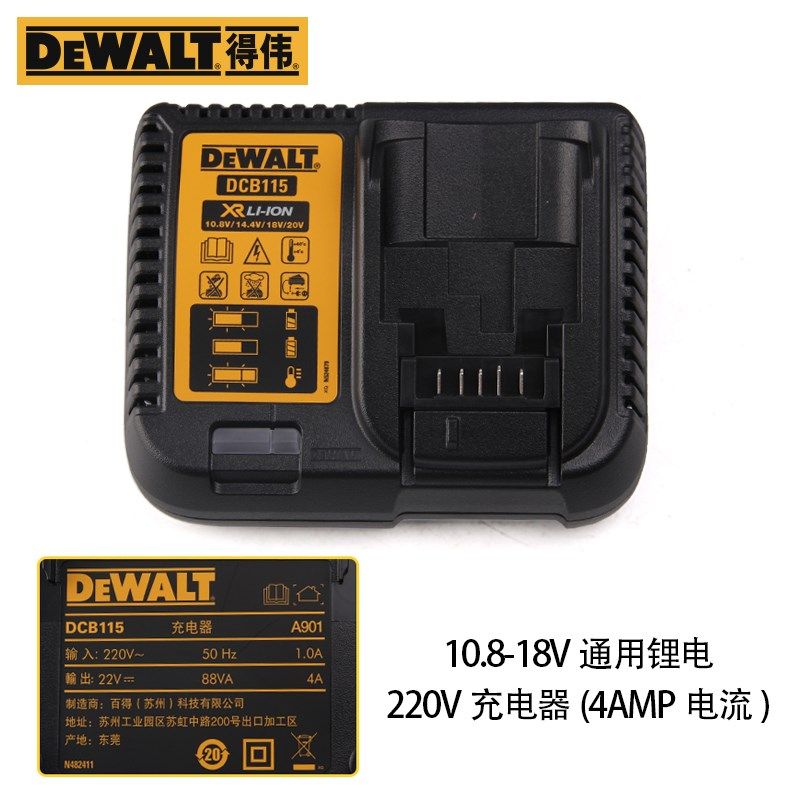 原装得伟锂电池10.8V/12V/18V/20V/60V快充慢充充电器DCB115/118