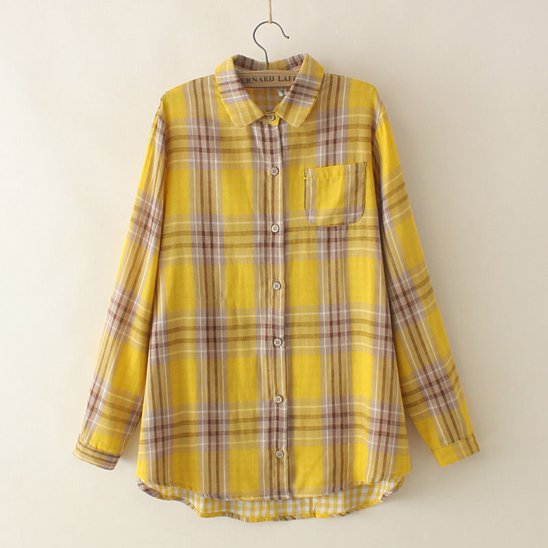 双层纯棉妈妈棉纱大码衬衫春秋长袖衬衣洋气宽松格子新款上衣外套