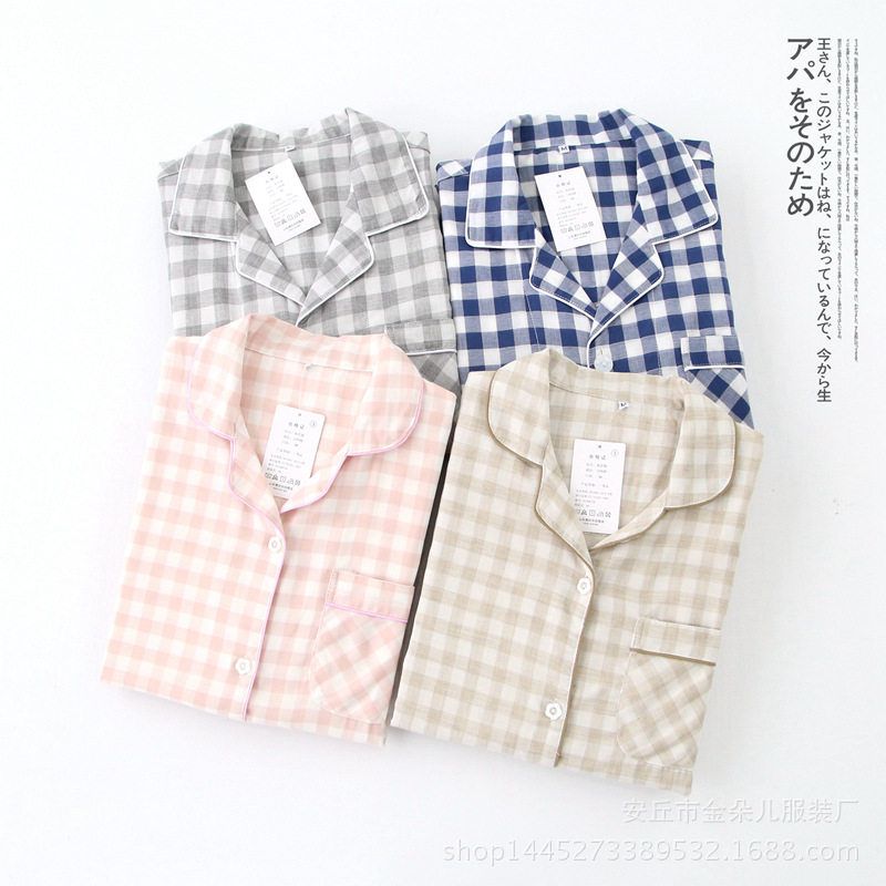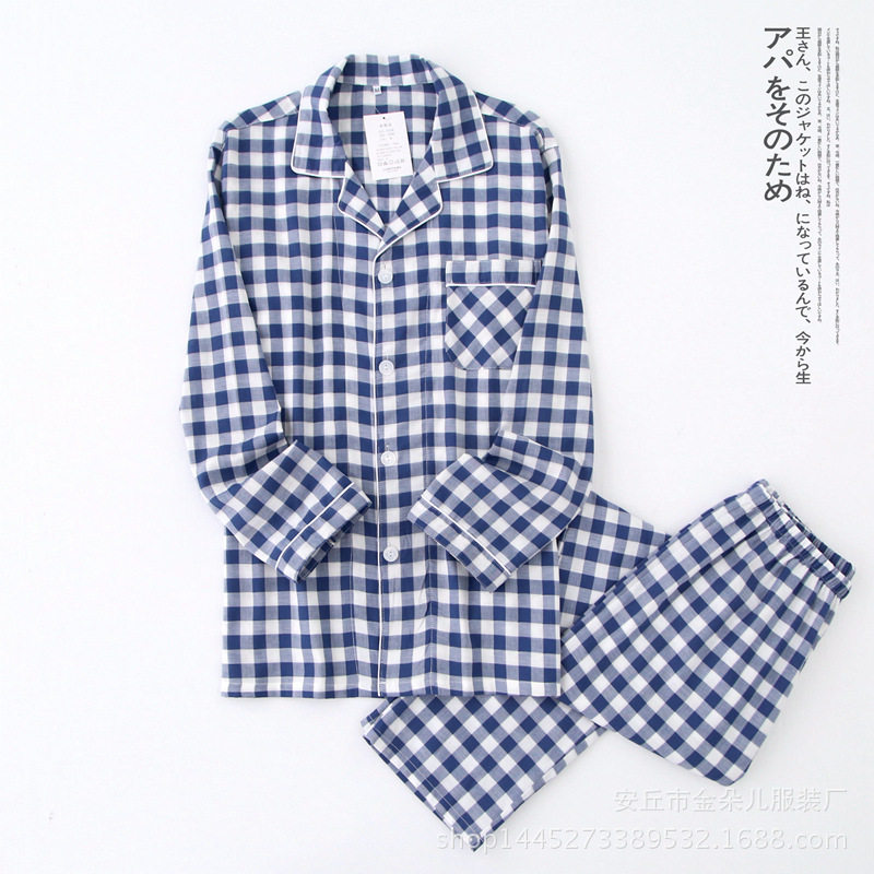 2020春季新品情侣睡衣双层纱布男女士长袖家居服套装厂家直发