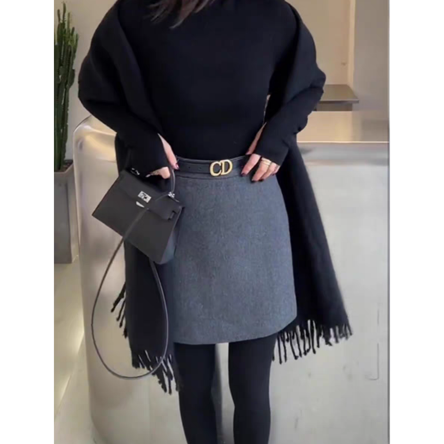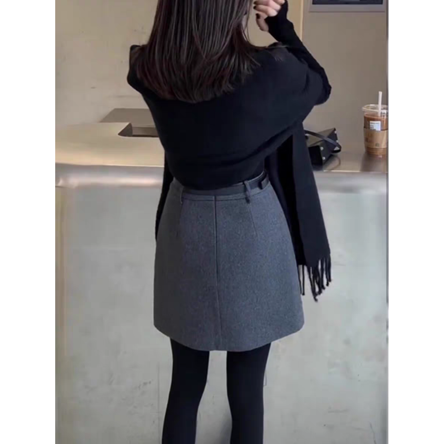 大码高级灰毛呢短裙女休闲半身裙