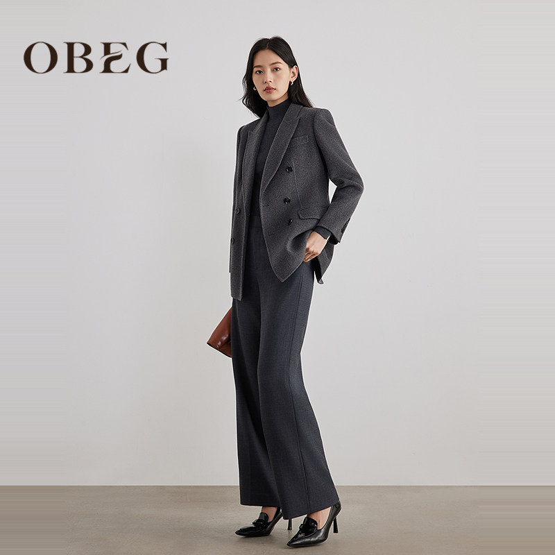 【商场同款】OBEG欧碧倩2025冬复古西装款羊毛双面呢大衣10504001