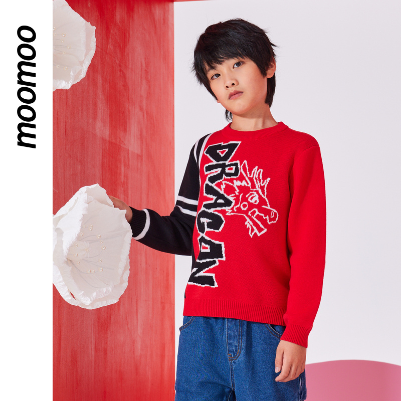 美特斯邦威童装男童毛衣春季新款经典新年图案潮酷帅百搭宽松上衣
