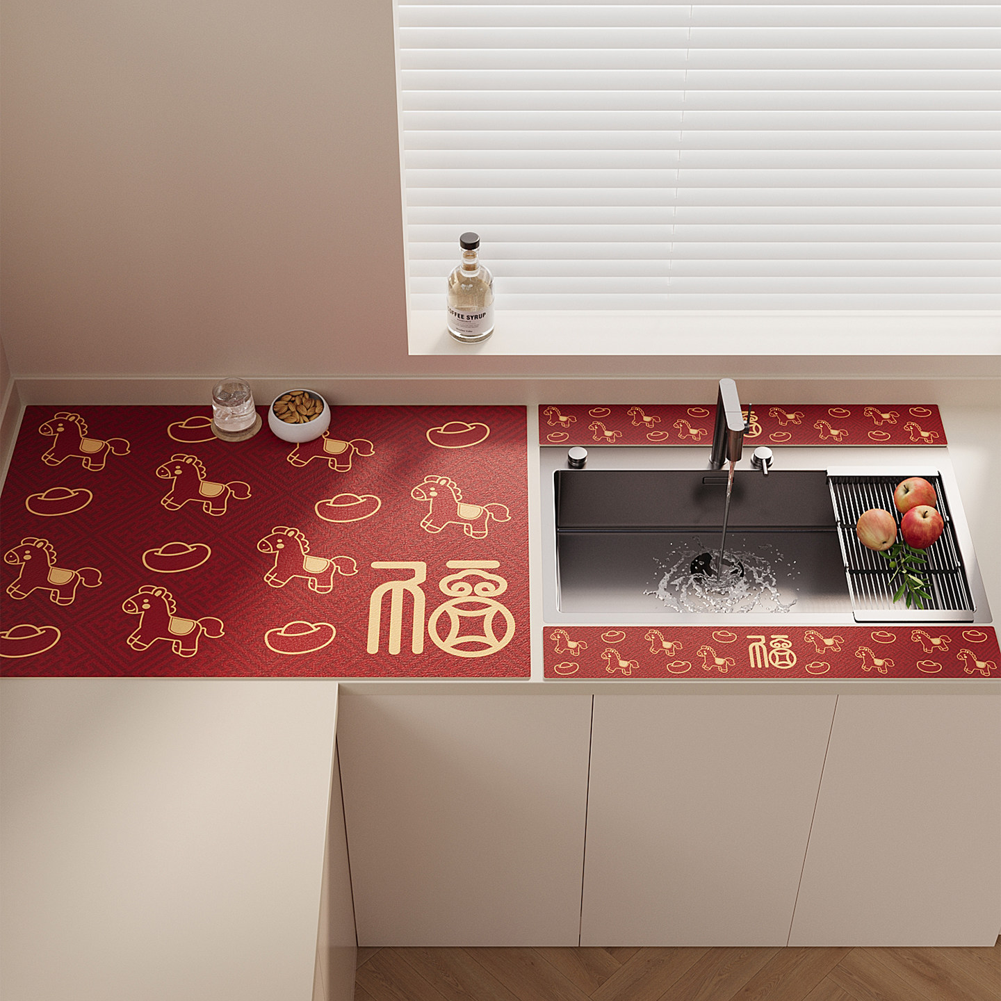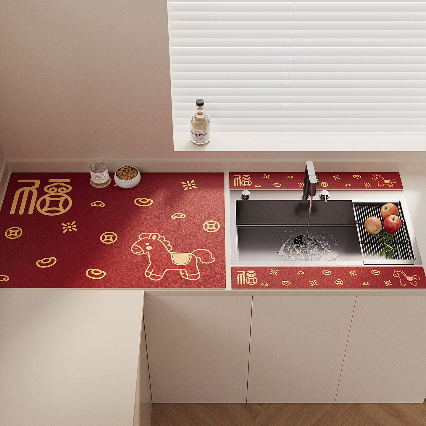 卡通小马硅藻泥窄边沥水垫厨房水龙头吸水垫洗手台免洗可擦台面垫