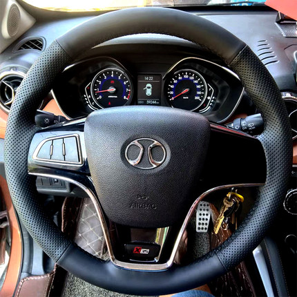 专用北京北汽EX360方向盘套EC5新能源手缝真皮V160把套保护X35冬