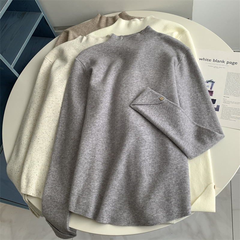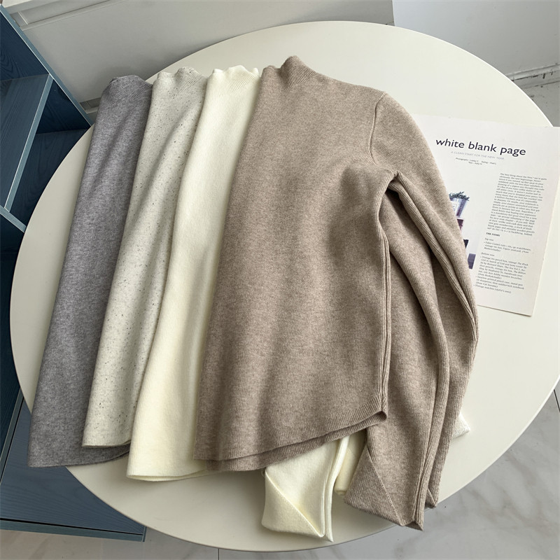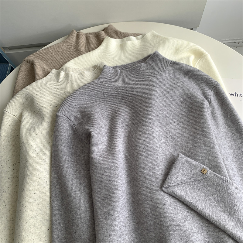 高级感灰色半高领针织衫软糯小立领秋冬新款毛衣女简约打底衫上衣