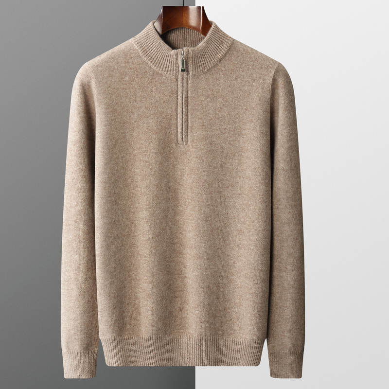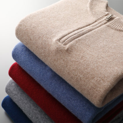 秋冬100%纯羊毛衫拉链半高领男加厚纯色长袖套头保暖针织打底毛衣