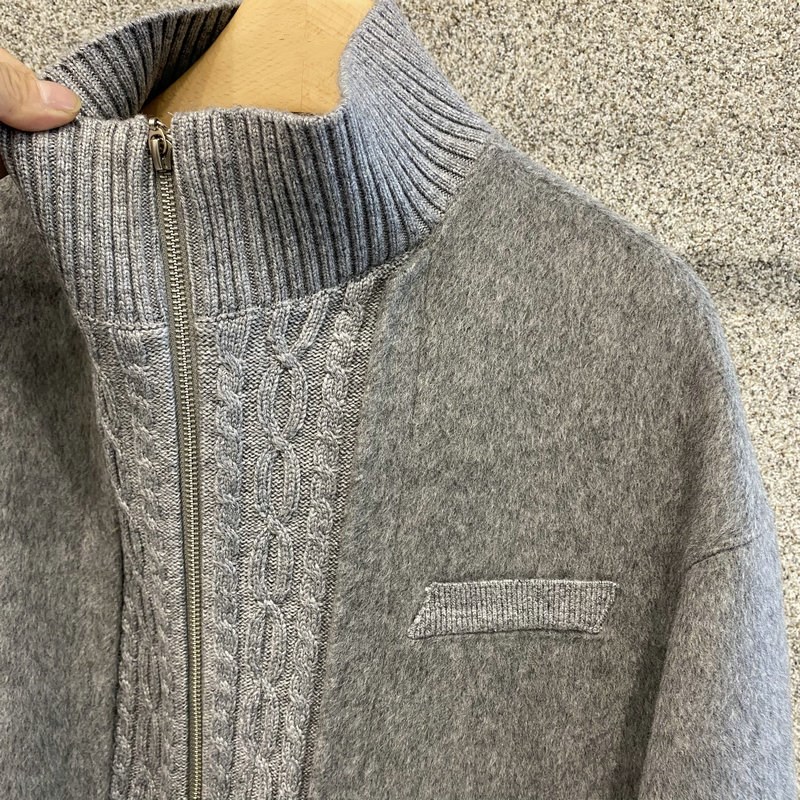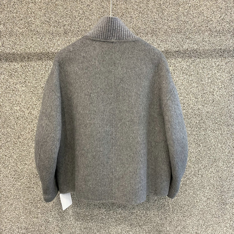 欧洲站2025秋冬女装立领拼接针织牦牛绒双面羊毛呢大衣百搭短外套