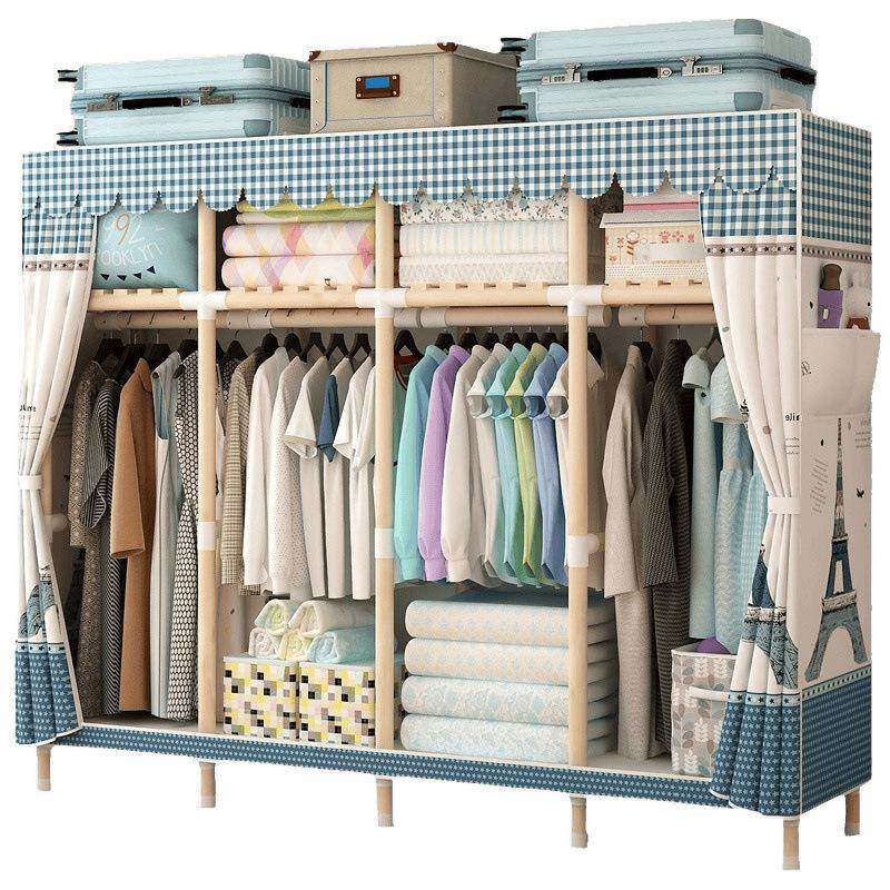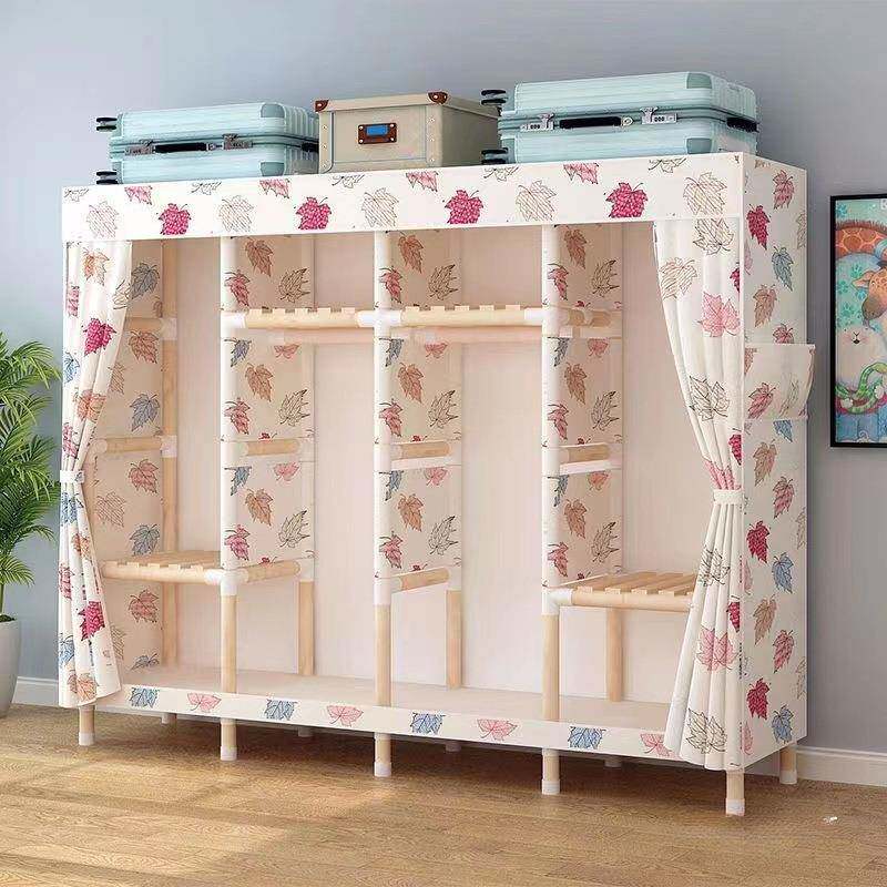 出租房用组简易装布衣柜456实木布衣子家用卧室牛津布橱挂衣衣柜
