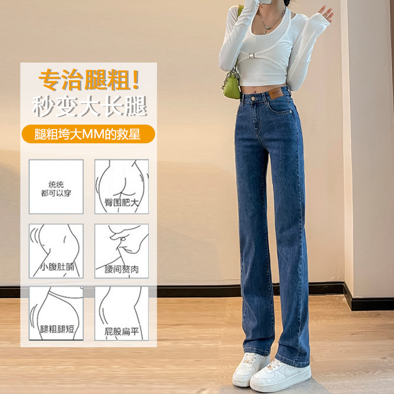 复古蓝高腰牛仔裤女春装2024年新款爆款黑色窄版阔腿烟管直筒裤子