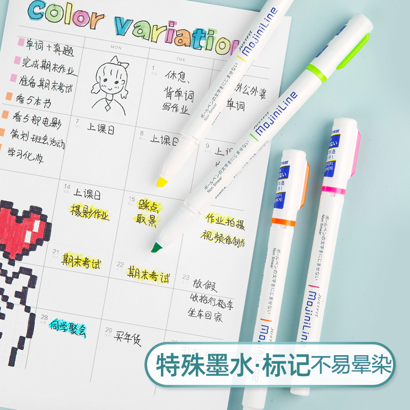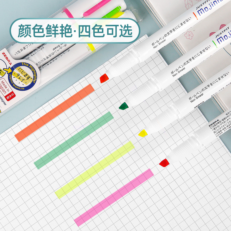 日本ZEBRA斑马淡色荧光笔字迹不易晕染WKS22不易墨迹MojiniLine学生手帐标记彩色记号笔划重点醒目学习复习笔