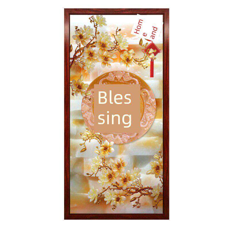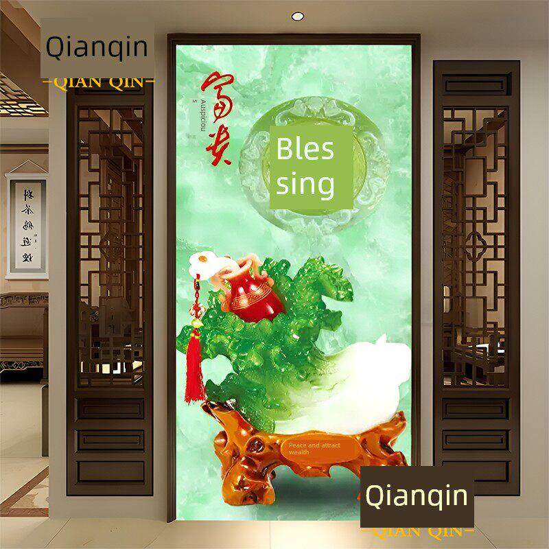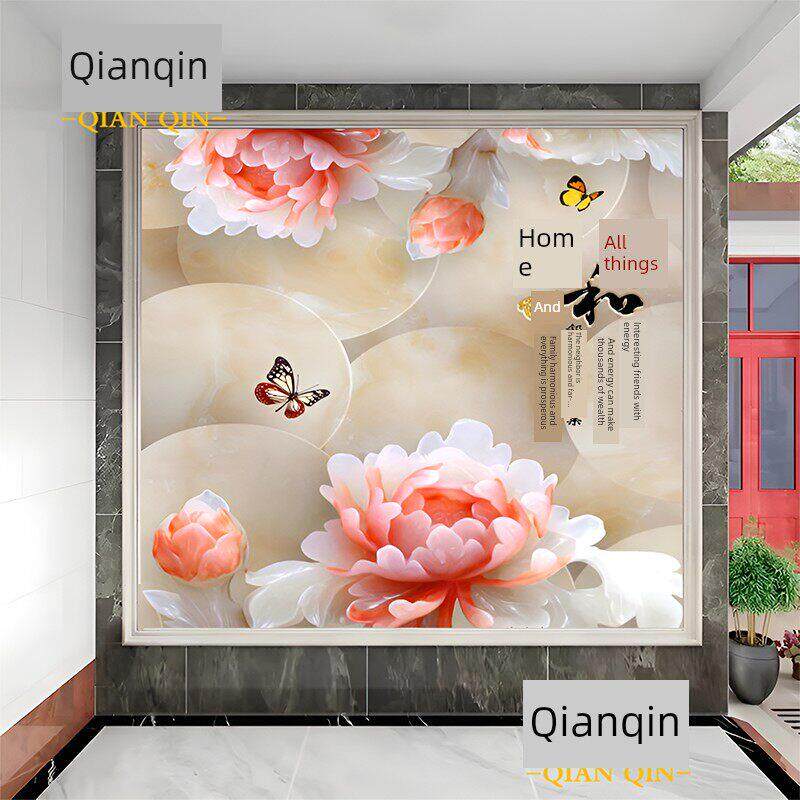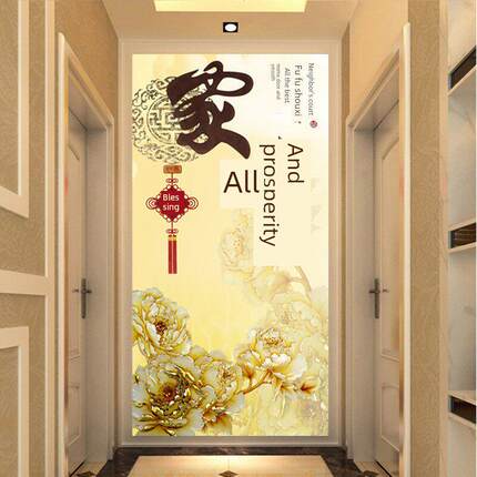 入口彩绘瓷砖背景墙微晶石大理石板岩入口通道客厅立体中国风家居