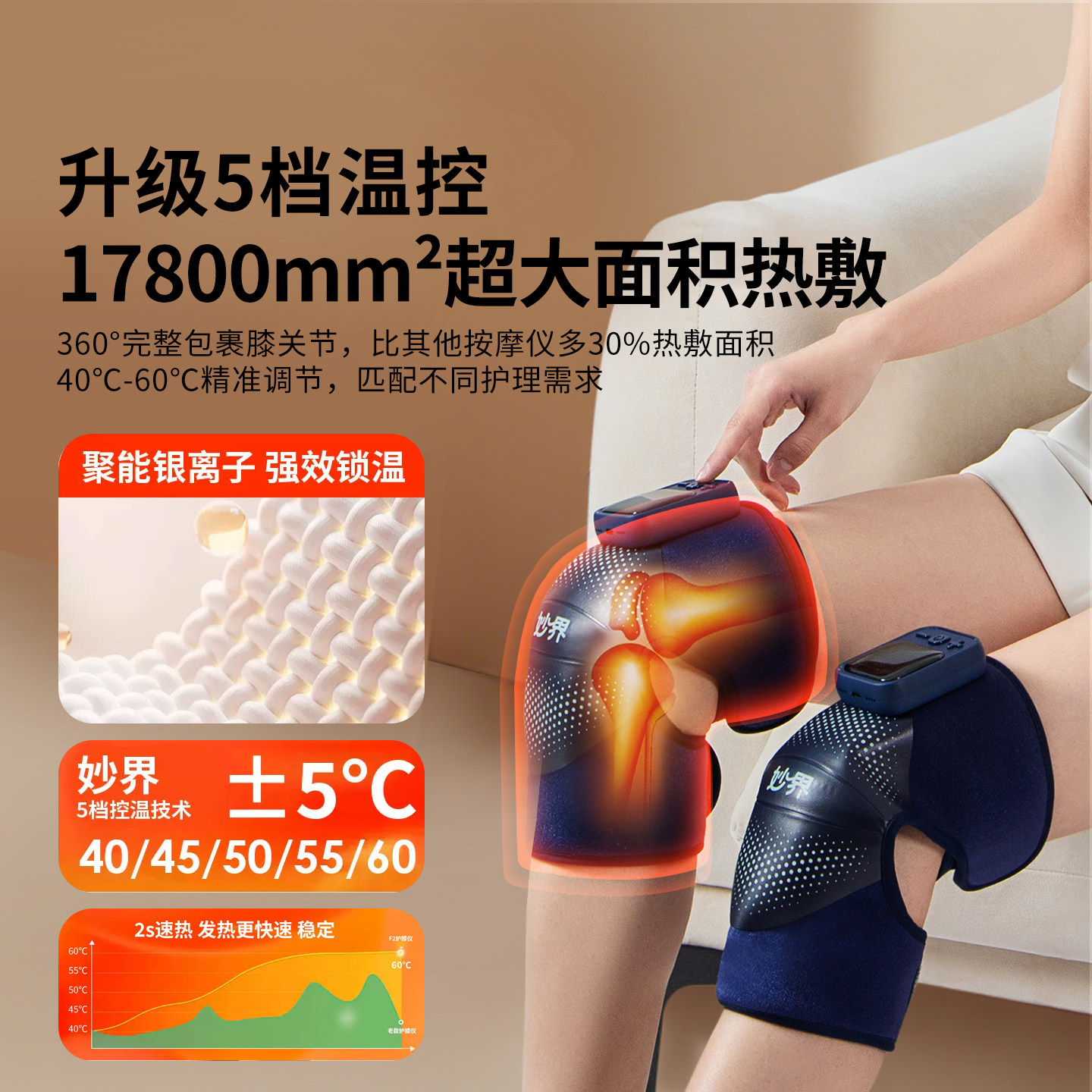 妙界F2护膝盖发热敷按摩仪器保暖加艾灸电热疗关节套中老年人礼物