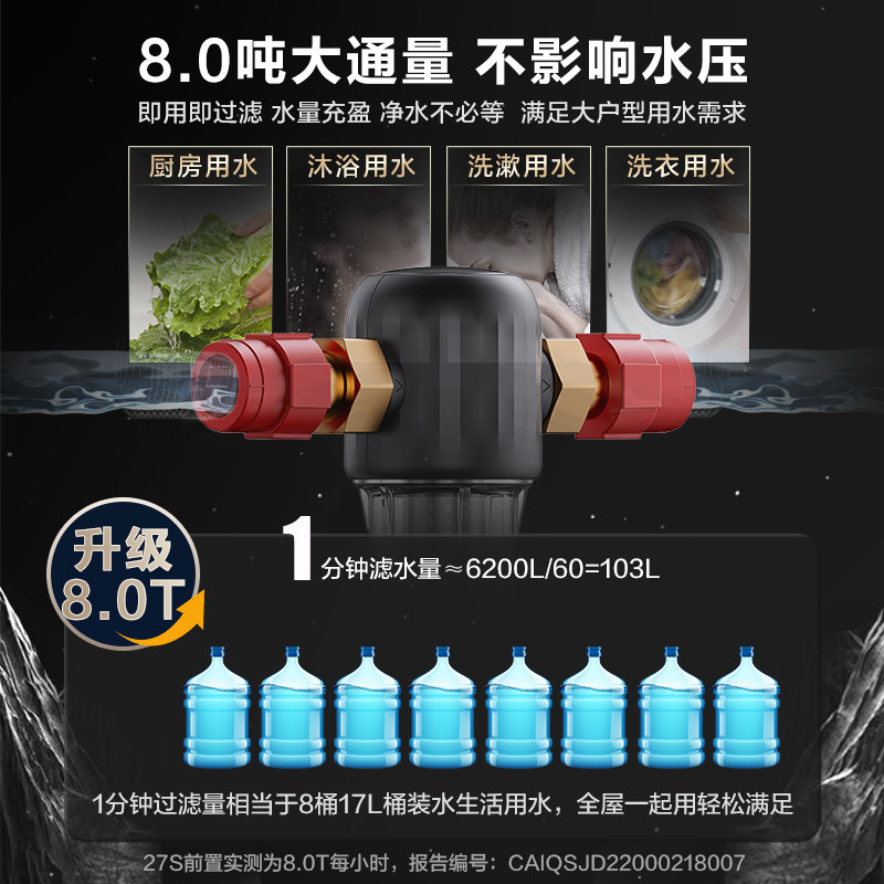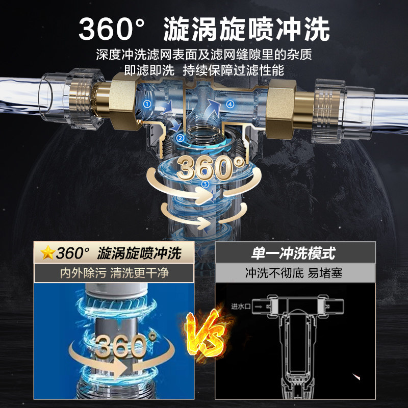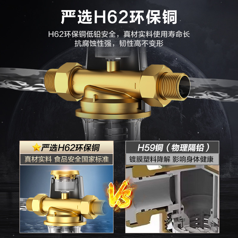 美的前置过滤器家用反冲洗全铜防爆全屋自来水前置式过滤器净水机