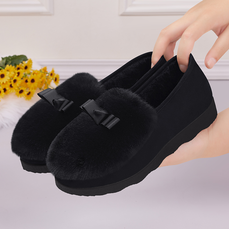 豆豆鞋女冬加绒外穿老北京布鞋一脚蹬新款保暖妈妈软底秋毛毛棉鞋