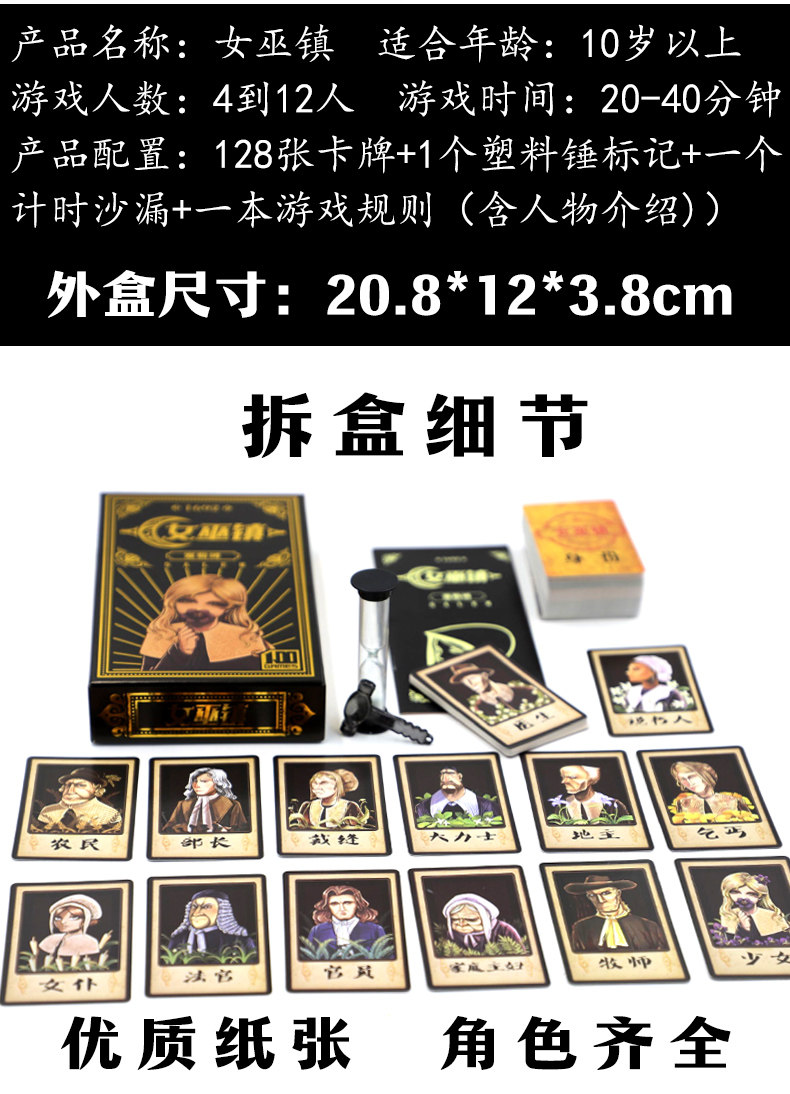 桌游女巫镇杀人游戏狼人猎巫嘴炮策略推理娱乐休闲聚会卡牌游戏