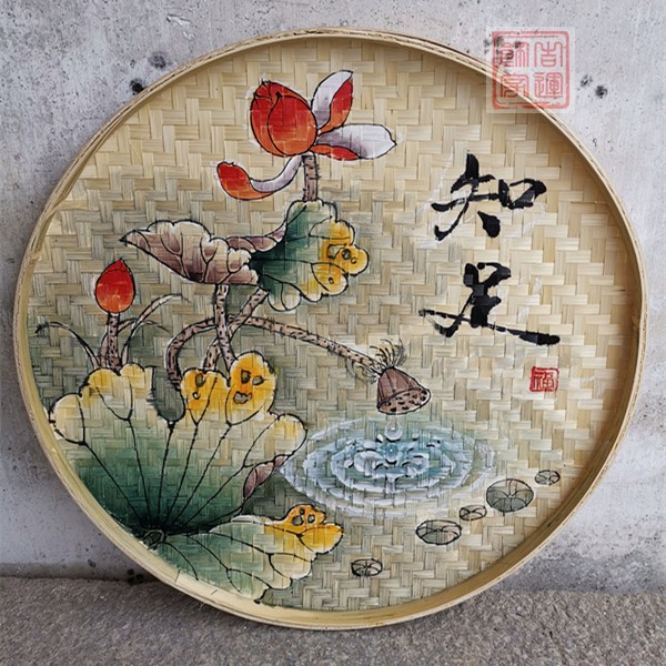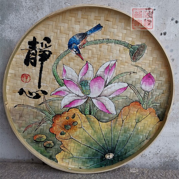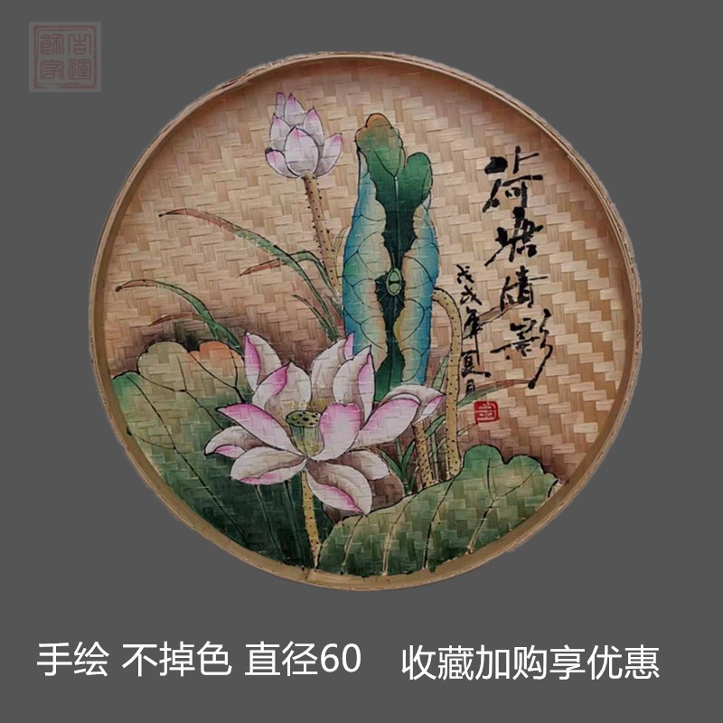 复古手绘竹筛子挂饰竹编装饰品簸箕墙壁墙面墙上挂件Y家居背景墙