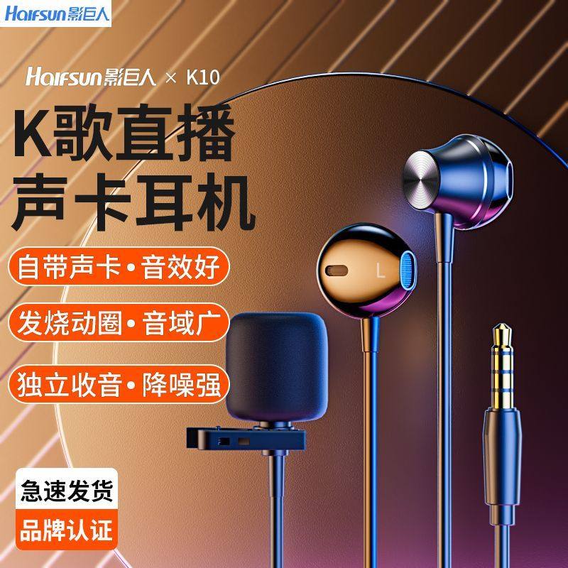 影巨人K10全民K歌有线耳机唱录歌麦克风耳麦二合一手机直播耳返