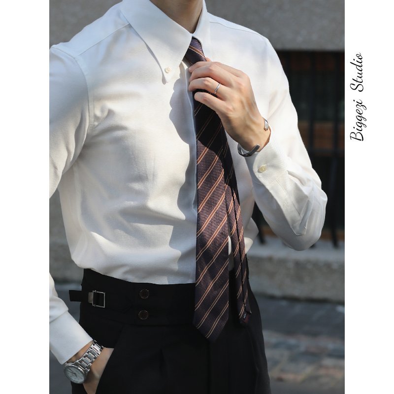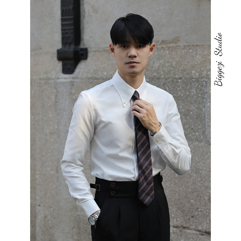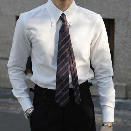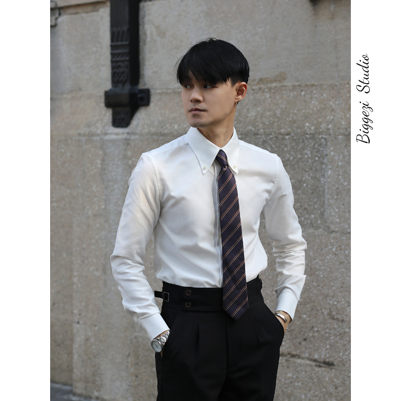 意式那不勒斯复古大尖领 轻商务牛津纺有型百搭基础款休闲白衬衫