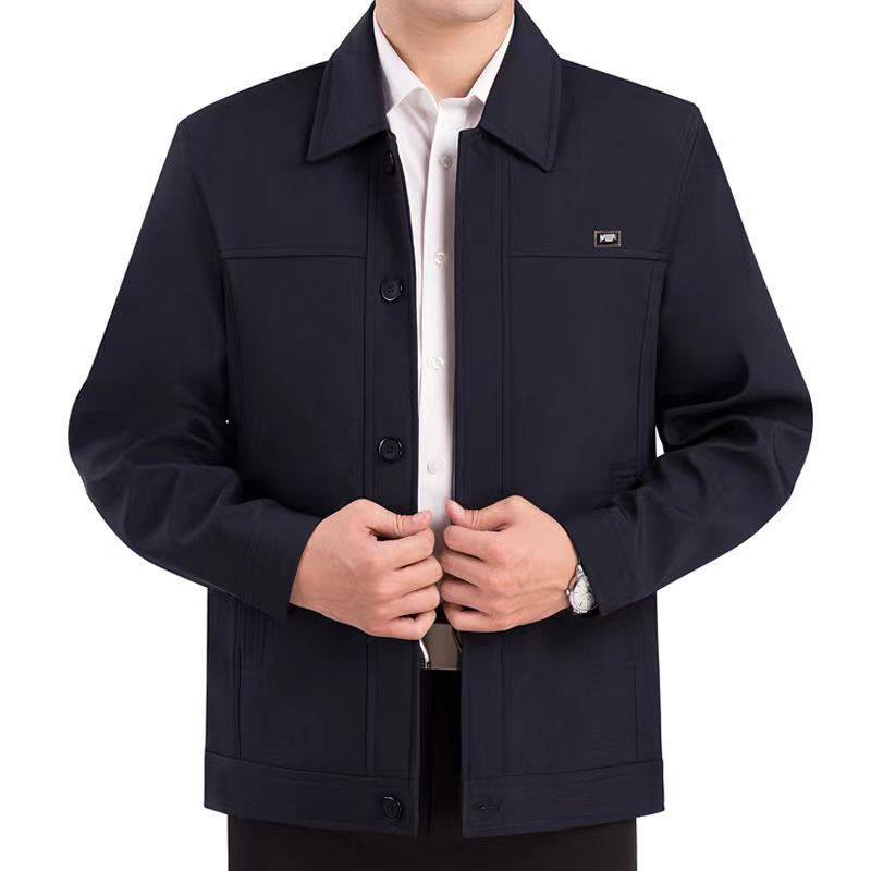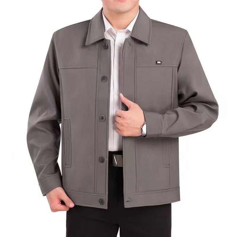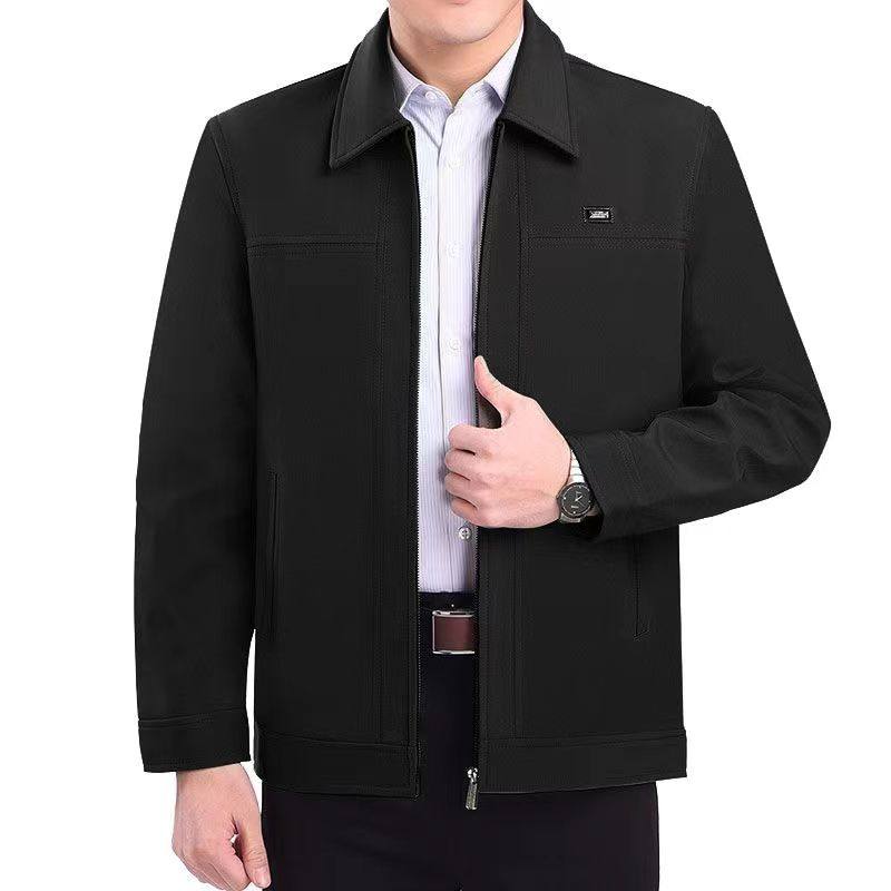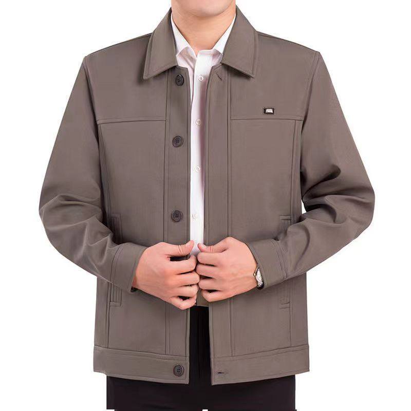 正品中老年夹克春秋中年男装休闲宽松外套爸爸装上衣薄款褂子